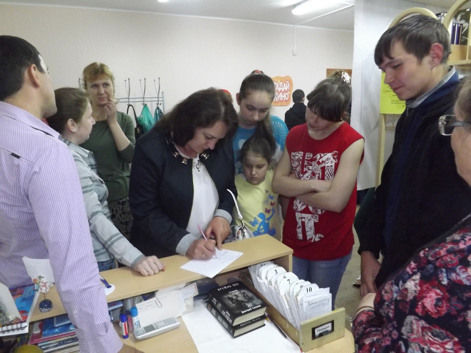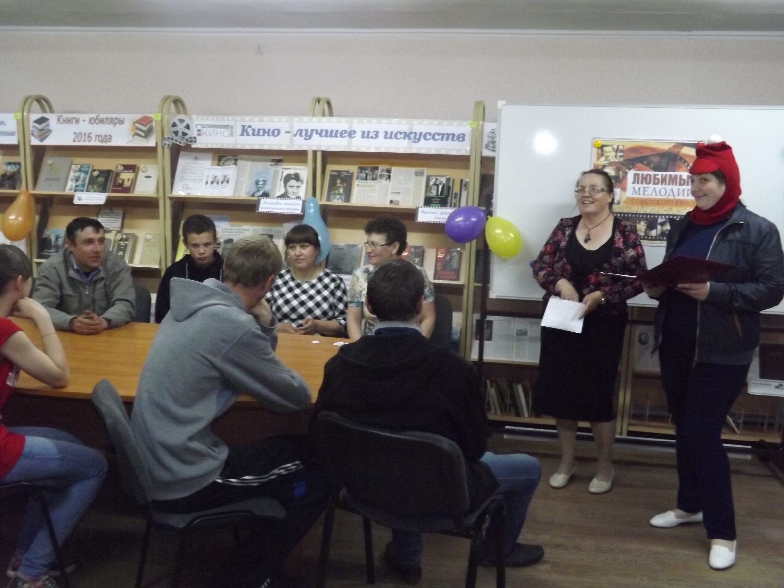 Каждый этап игры завершался вручением команде – победителю одного слова из кодовой фразы о кино. Она звучала так: «Кино должно заставить зрителя поверить в реальность происходящего на экране». На протяжении всего соревнования члены обеих команд показывали примерно равные результаты, но в конкурсе на знание песен из кинофильмов участница библионочи Екатерина Владимировна Никифорова была явным и единственным лидером. Она угадывала прозвучавшие мелодии с нескольких первых нот. По единодушному решению коллектива МЦБ Екатерина Владимировна была объявлена самым активным участником проведенного мероприятия.