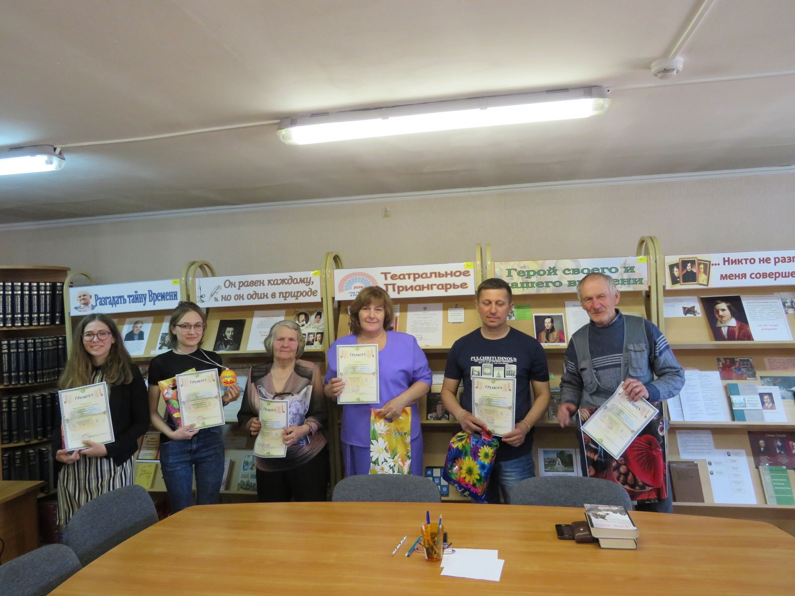 Фомченкова В. А. была названа самым многогранным, а Осинцева В.В. – самым позитивным читателем. А. И. Кузнецова получила звание «вечный двигатель». Т.А. Шеметова победила в номинации «Любитель фантастики и фэнтези». Лучшей читающей семейной парой стали супруги Хмельницкие. Верным другом библиотеки назвали Е.М. Миненкову, читателем-краеведом – Е.А. Рудых, премьер-читателем (любителем книжных новинок) объявлен А.Ф. Худяков. В.В. Машуков был признан знатоком советской прозы.