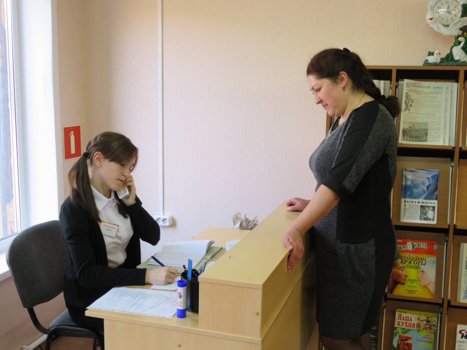 «Библиотекарь на час», так назывался день дублера, прошедший в Межпоселенческой центральной библиотеке 20 мая 2019 г. в преддверии Всероссийского дня библиотек. Молодым читателям была предоставлена возможность испытать себя в роли библиотекаря. Дублерами сотрудников отдела обслуживания Межпоселенческой центральной библиотеки на несколько часов стали старшеклассницы из Жигаловской средней общеобразовательной школы № 1 им. Г. Г. Малкова Зуева Дарья и Панькова Анастасия. Настя в читальном зале выдавала пользователям библиотеки периодические издания и отвечала на запросы по телефону. Даша на абонементе обслуживала пользователей библиотеки, оформила книжную выставку, поработала с алфавитным и систематическим каталогами. Для того, чтобы справиться со своими новыми обязанностями, девочки прошли практикум на будущем рабочем месте, выяснили для себя некоторые тонкости работы в библиотеке, узнали о порядке размещения книжного фонда, правилах пользования выданной литературой. Читатели были довольны обслуживанием «библиотекарей на час», ни одного критического замечания в адрес дублеров не было. По окончании рабочего дня старшеклассницы сообщили, что испытать себя в новой роли им было интересно и полезно. Так волонтеры получили представление о работе и профессии библиотекаря. Возможно в будущем, кто-то из них захочет работать в библиотеке.