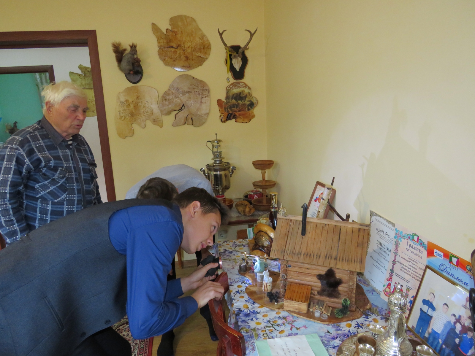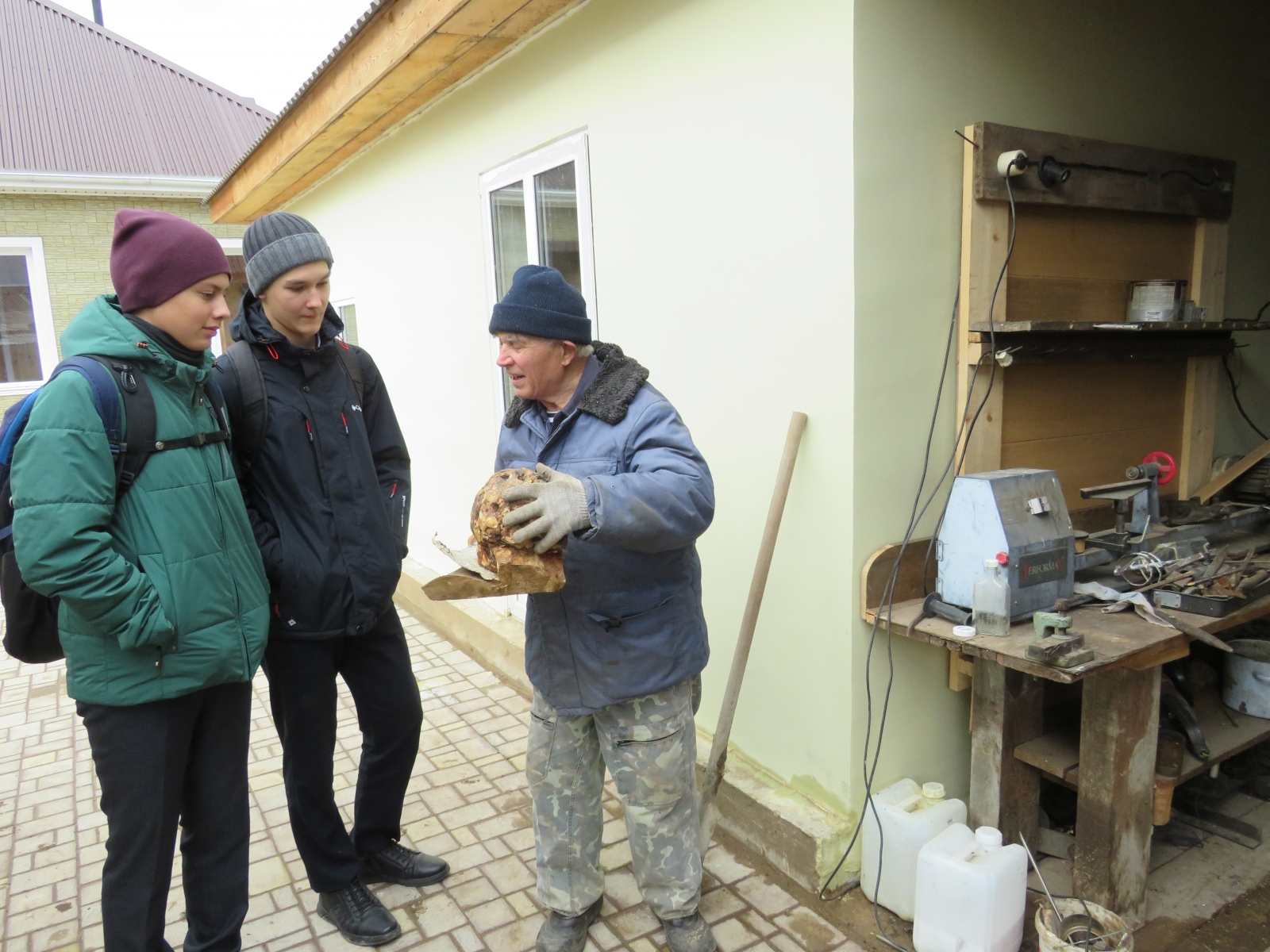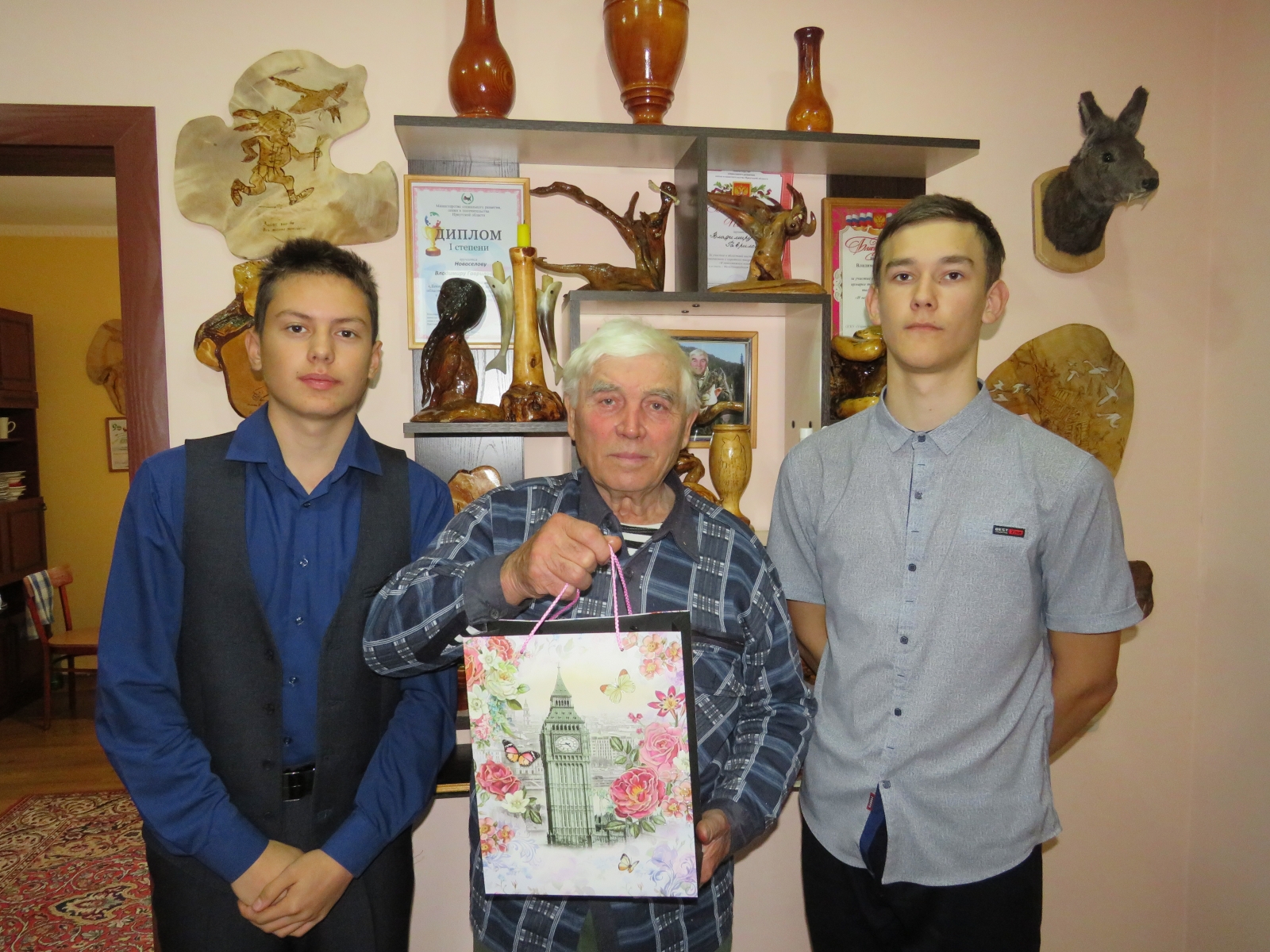 Владимир Гаврилович принимал гостей у себя дома, провел мастер-класс в своей мастерской. Показал, как простой нарост на дереве может превратиться в произведение искусства. Ребята с удовольствием слушали подробные рассказы и интересные истории из жизни Владимира Гавриловича.